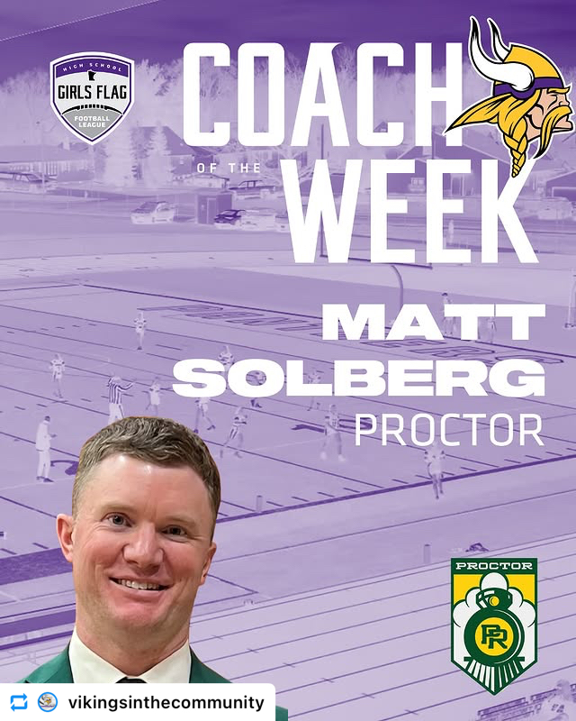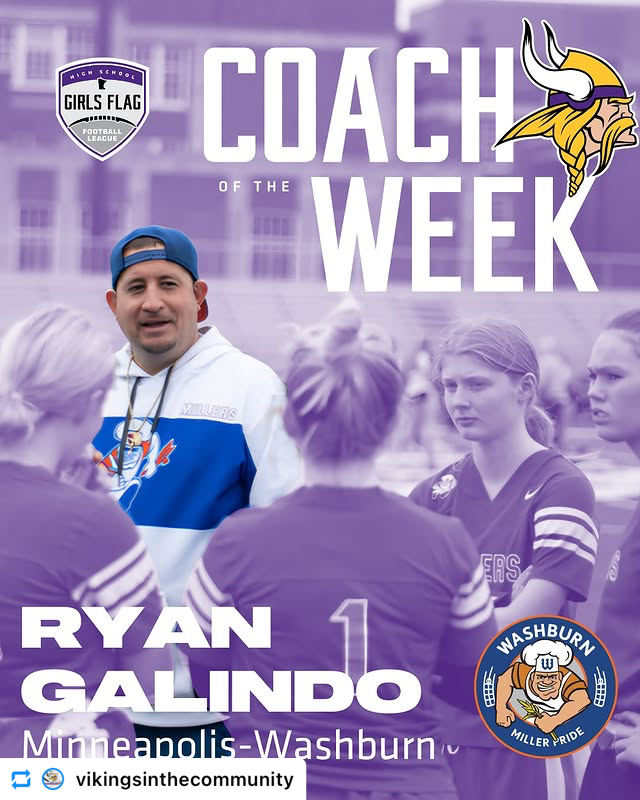 With the first-ever season of girls’ flag high school football in Minnesota underway, the National Football League‘s Minnesota Vikings are beginning to salute coaches. This week, the team announced its first two Coaches of the Week.